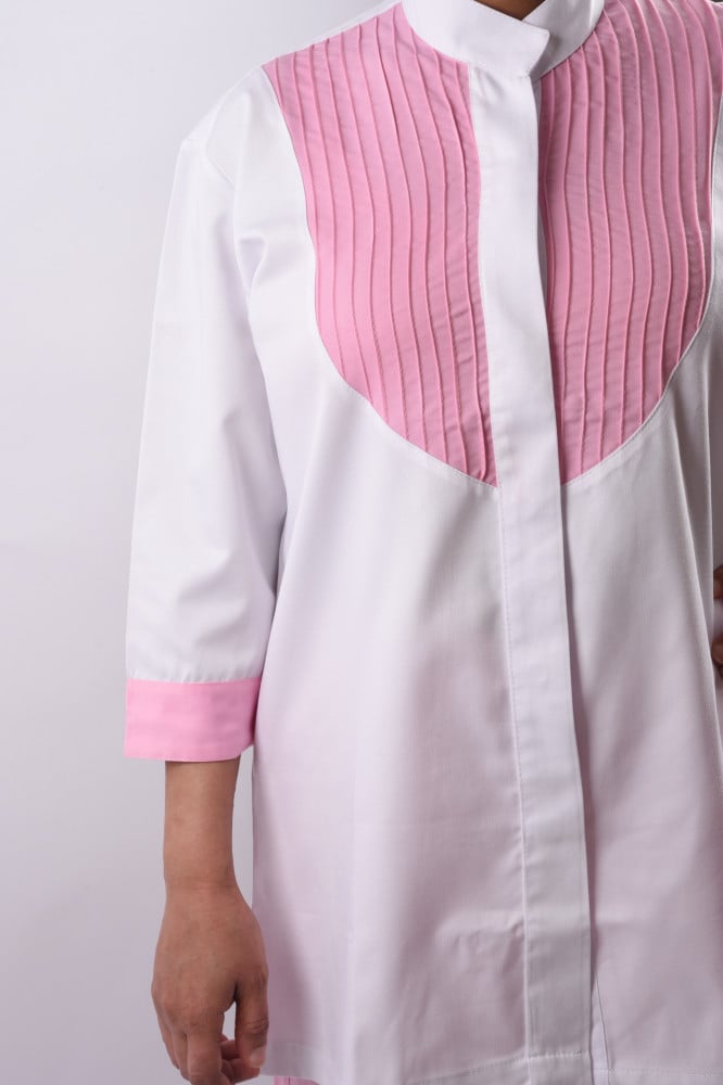 يونيفورم العاملات "الكسر الوردية" يقدم الأناقة والراحة في آنٍ واحد. مصمم خصيصاً للعاملات، يتميز هذا الزي بطابع راقٍ وأنيق، مما يجعله مثاليًا للاستخدام اليومي أو لإظهار مظهر مرتب ومنظم لعاملتك. الأكمام الطويلة والمواد القطنية المخلوطة تضفي لمسة من الراحة والعملية.