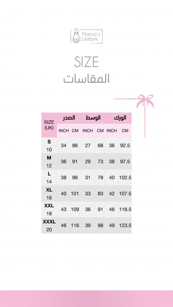 - ولمعرفة المقاس المناسب يمكن زيارة دليل المقاسات.